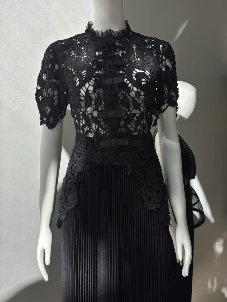 A kiállításon antik főúri, nagypolgári és népviseleti ruhadarabok elemei, hímzések, csipkék és